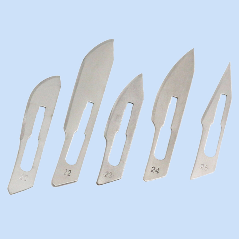 ໃບມີດຜ່າຕັດ, ເຊິ່ງເອີ້ນກັນວ່າແຜ່ນໃບຫອກ, ປະກອບດ້ວຍໃບມີດແລະມືຈັບ, ແລະວັດສະດຸແລະການອອກແບບຂອງມັນແມ່ນເຫມາະສົມສໍາລັບຄວາມຕ້ອງການຂອງສະຖານະການທາງການແພດ. ໃນແງ່ຂອງວັດສະດຸຜະລິດຕະພັນ, ແຜ່ນໃບຄ້າຍຄືສະແຕນເລດແມ່ນເຫມາະສົມສໍາລັບສະພາບແວດລ້ອມການຜ່າຕັດທີ່ບໍ່ສະອາດແລະຊຸ່ມຊື່ນເນື່ອງຈາກການຕໍ່ຕ້ານ corrosion, ຄວາມທົນທານ, ແລະ biocompatibility ທີ່ເຂັ້ມແຂງ. ພວກເຂົາສາມາດຖືກຂ້າເຊື້ອຫຼາຍຄັ້ງແລະມີຄວາມຄົມຊັດທີ່ຍາວນານ, ເຮັດໃຫ້ພວກມັນເປັນປະເພດຕົ້ນຕໍໃນຕະຫຼາດໃນປະຈຸບັນ; ແຜ່ນໃບຄ້າຍຄືເຫຼັກກາກບອນແມ່ນເປັນທີ່ຮູ້ຈັກສໍາລັບຄວາມຄົມຊັດທີ່ສຸດຂອງພວກເຂົາແລະຄ່າໃຊ້ຈ່າຍທີ່ມີປະສິດທິພາບສູງ, ແລະການອອກແບບທີ່ມີນ້ໍາຫນັກເບົາແມ່ນເຫມາະສົມສໍາລັບການປະຕິບັດງານທີ່ດີເຊັ່ນ: ການຜ່າຕັດຕາແລະປະສາດ. ພວກເຂົາເຈົ້າສ່ວນຫຼາຍແມ່ນຖິ້ມຂີ້ເຫຍື້ອເພື່ອຫຼີກເວັ້ນຄວາມສ່ຽງຕໍ່ການກັດກ່ອນ. ຜະລິດຕະພັນການຄ້າຕ່າງປະເທດທັງໝົດໄດ້ຮັບການປິ່ນປົວແບບ aseptic ຢ່າງເຂັ້ມງວດ ແລະໃຊ້ການຫຸ້ມຫໍ່ທີ່ເປັນເອກະລາດເພື່ອບໍ່ໃຫ້ເກີດຄວາມຮ້ອນ, ບໍ່ມີຄວາມສ່ຽງຕໍ່ການເກີດອາການແພ້, ແລະປະຕິບັດຕາມມາດຕະຖານຄວາມປອດໄພເຊັ່ນ: CE ແລະ ISO.