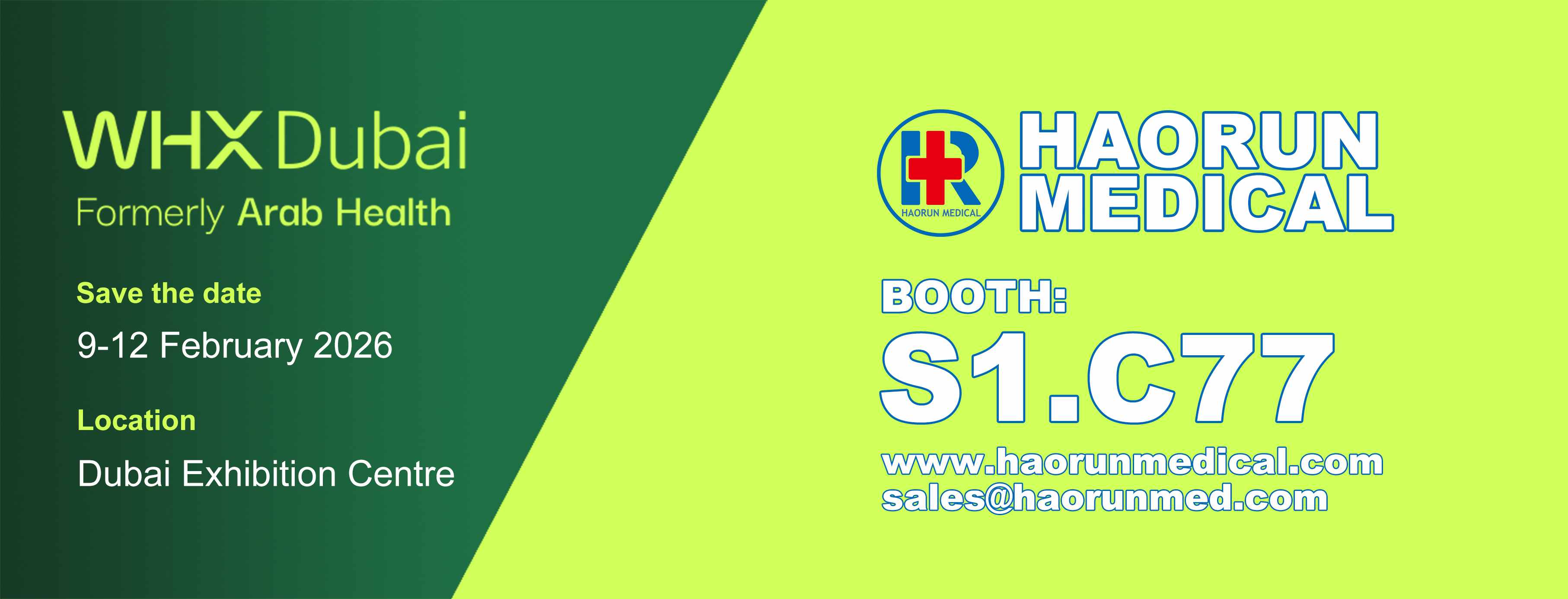 ວັນທີ 9 ຫາ 12 ກຸມພາ 2026, ງານວາງສະແດງ WHX Dubai (ອະດີດອາຣັບສຸຂະພາບ) ທີ່ຄາດວ່າຈະໄດ້ເປີດຂຶ້ນຢ່າງຍິ່ງໃຫຍ່ຢູ່ທີ່ສູນວາງສະແດງ Dubai, ດຶງດູດຄວາມສົນໃຈທົ່ວໂລກຈາກອຸດສາຫະກໍາການດູແລສຸຂະພາບ. ໃນຖານະເປັນຜູ້ຜະລິດມືອາຊີບຂອງອຸປະກອນການແພດ, Haorun Medical Dressing Co., Ltd ໄດ້ສະແດງຜະລິດຕະພັນຫຼັກຂອງຕົນຢູ່ທີ່ບູດ S1.C77, ສະແດງໃຫ້ເຫັນຄວາມສາມາດ R & D ຂອງຈີນແລະມາດຕະຖານຄຸນນະພາບໃນຂະແຫນງການບໍລິໂພກທາງການແພດໃຫ້ແກ່ຜູ້ຊື້ທົ່ວໂລກ.